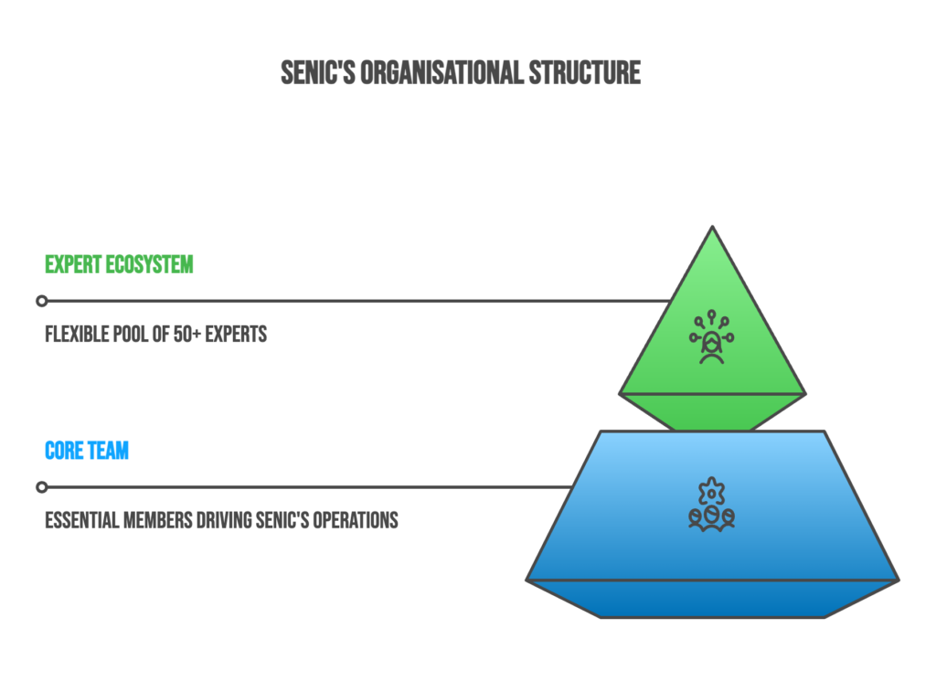 SENIC combines a growing core team with a broader expert ecosystem.